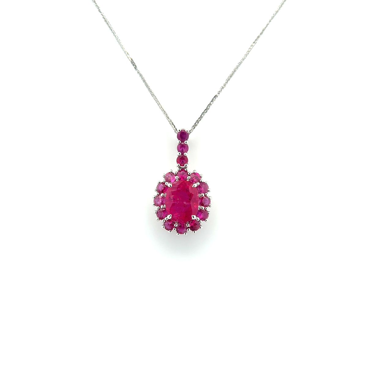 Seraphine Ruby Cascade Halo Pendant